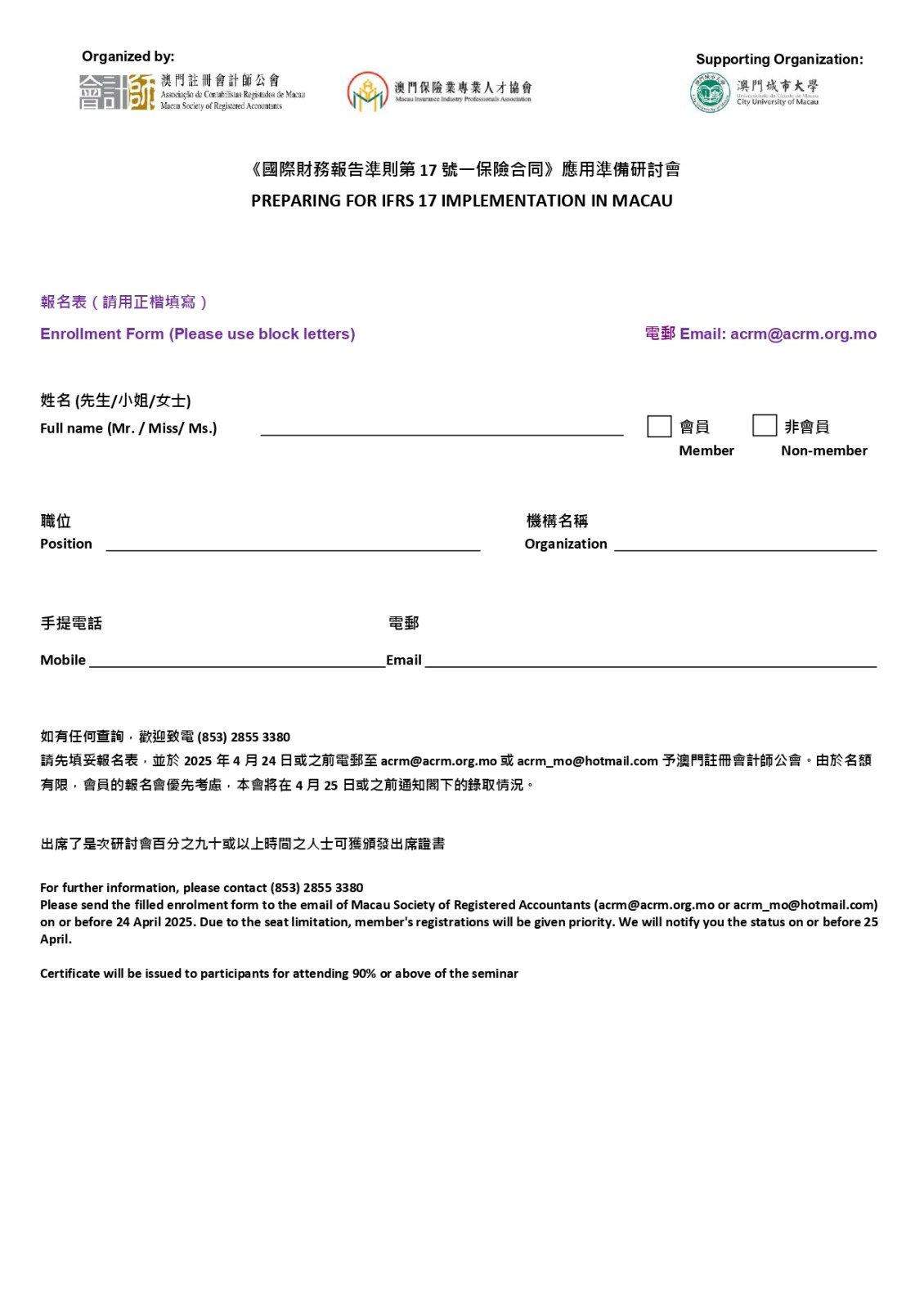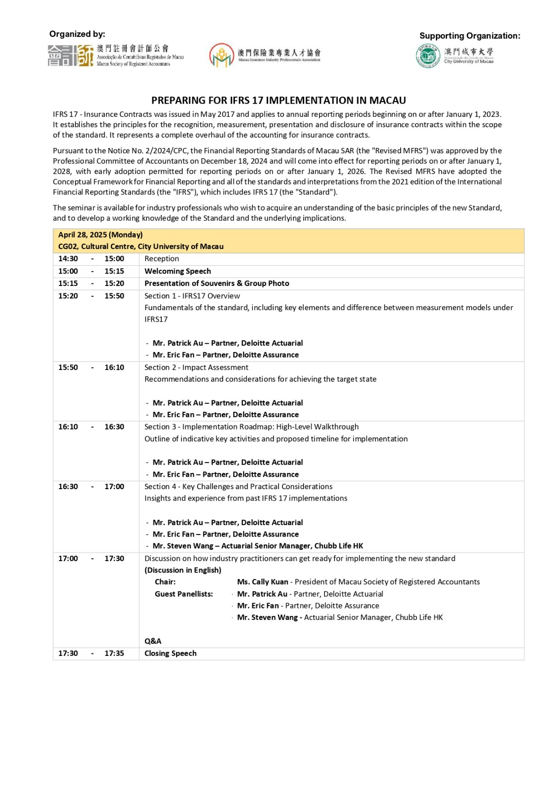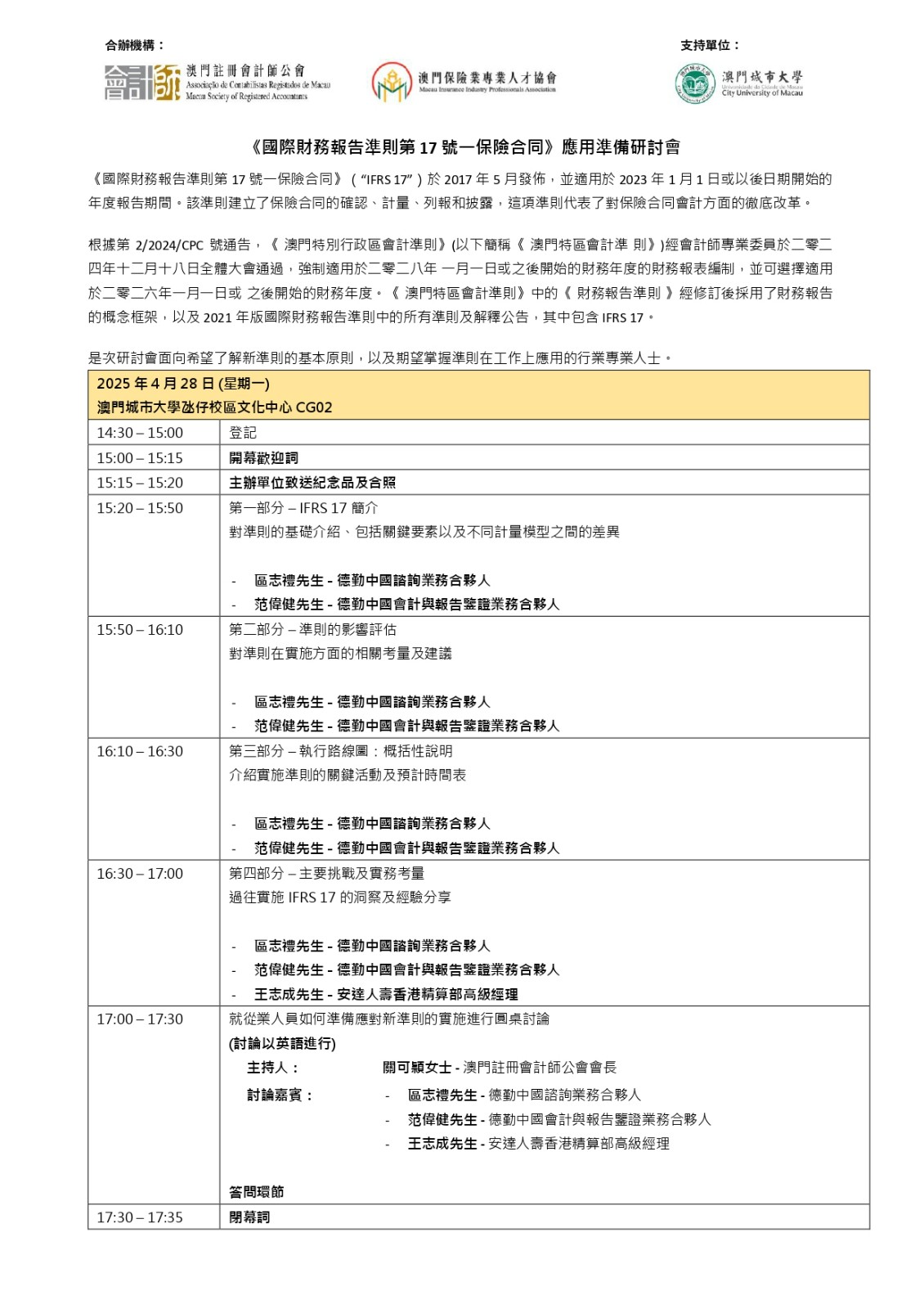 《國際財務報告準則第 17 號一保險合同》應用準備研討會